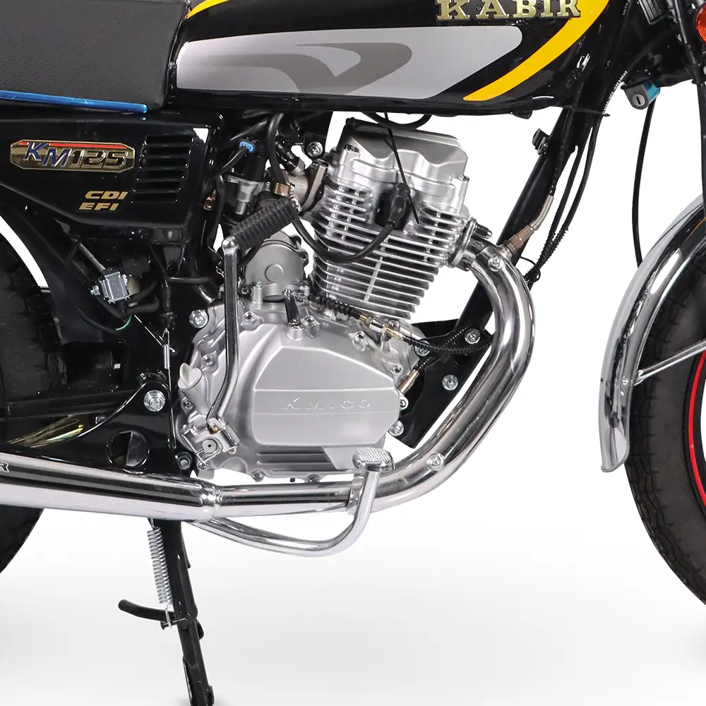 یکی از محبوب‌ترین و به‌صرفه‌ترین مدل‌های موجود در بازار، طرح هوندا سی جی می‌باشد. موتور سیکلت کبیر KM125، طرح هوندا سی جی، یکی از مدل های پرفروش به حساب می‌آید. این موتور دارای انجینی به حجم 124 سی سی، تک سیلندر، چهار زمانه و هوا خنک می‌باشد. کبیر KM 125CDI با این پیشرانه، می‌تواند به صورت تقریبی قدرتی معادل 9 اسب بخار در 8700 دور در دقیقه و گشتاوری معادل 8.5 نیوتن متر در 6500 دور در دقیقه تولید کند. این موتور دارای یک گیربکس دستی 4 سرعته است و حداکثر سرعت آن نیز، 85 کیلومتر بر ساعت محاسبه شده است. سیستم ترمزی که در این مدل تعبیه شده است، در محور جلو دیسکی و در محور عقب از نوع کاسه‌ای یا درام می‌باشد. تعلیق آن نیز مانند دیگر موتورهای طرح هوندا سی جی، از کمک فنر هیدرولیکی تلسکوپی در جلو و دوبل کمک فنر هیدرولیکی معمولی در عقب استفاده شده است. رینگ هوندا 125 با تغییر زیادی مواجه شده است و از حالت پره‌ای به حالت اسپرت تغییر کرده است. کبیر KM125، با ویژگی‌ها و قابلیت‌هایی که دارد، می‌تواند گزینه‌ای مناسب برای موتور کار یا پیک موتوری باشد.