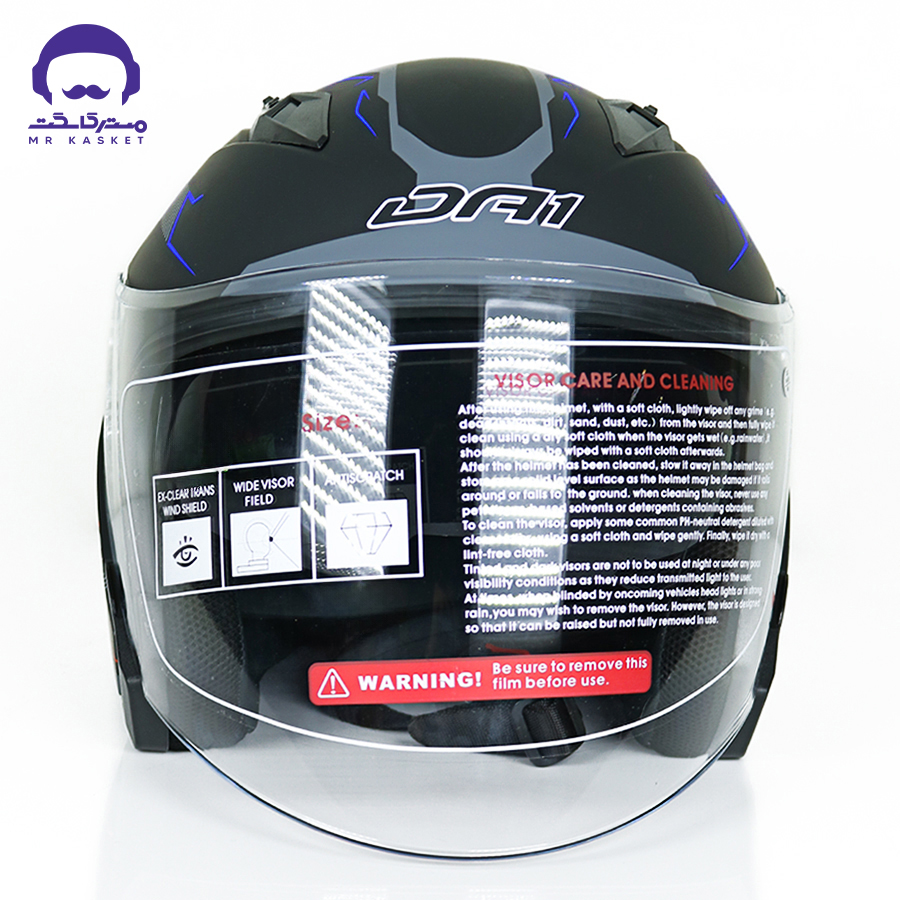 کلاه کاسکت ایمنی دی ای وان با وزن 1500 گرم، از جنس ABS ساخته شده است و دارای قابلیت تنظیم اندازه به صورت می باشد. این کلاه ایمنی دارای دریچه ورود هوا برای تهویه مناسب و هوای تازه است. همچنین طلق و فک متحرک برای راحتی بیشتر در استفاده از آن ارائه شده است.