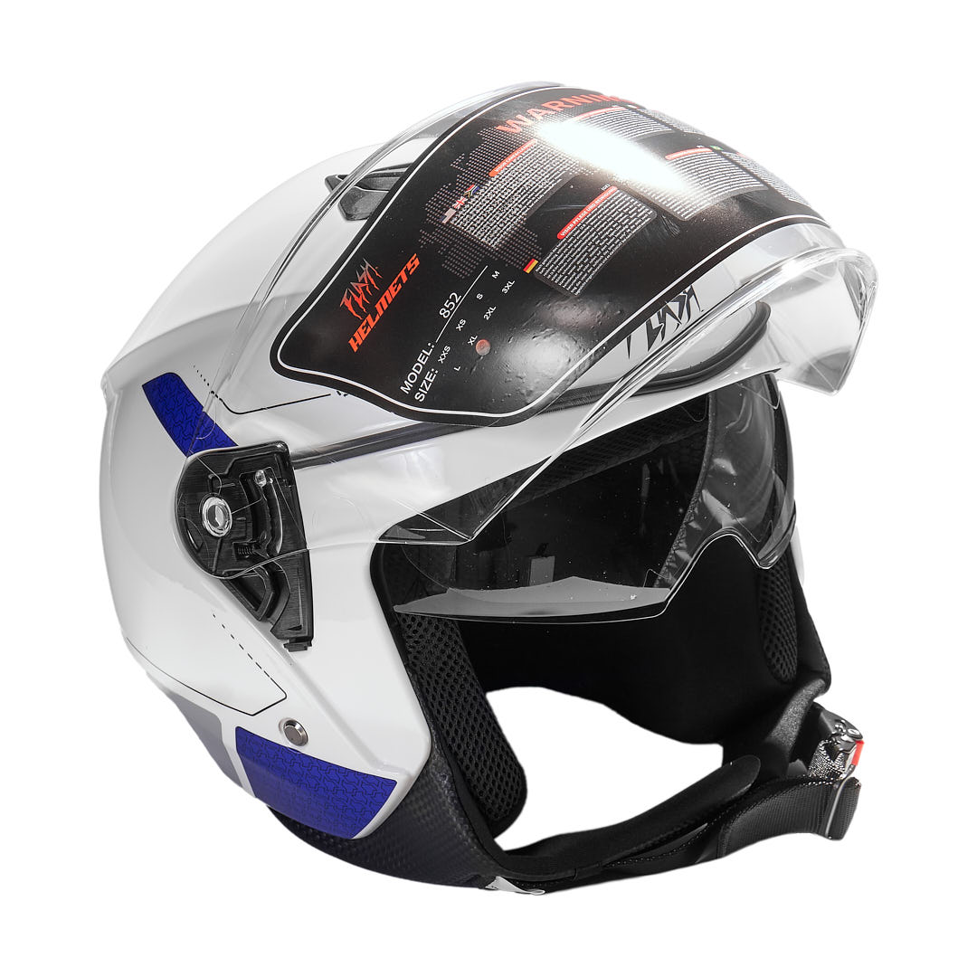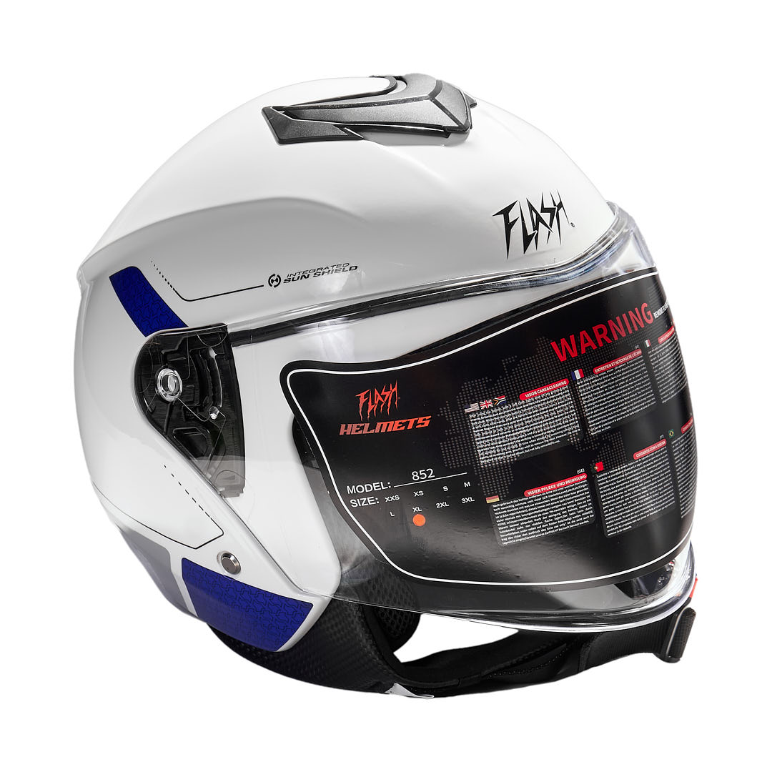 کلاه کاسکت بدون فک فلش مدل 852 glossy blue-white