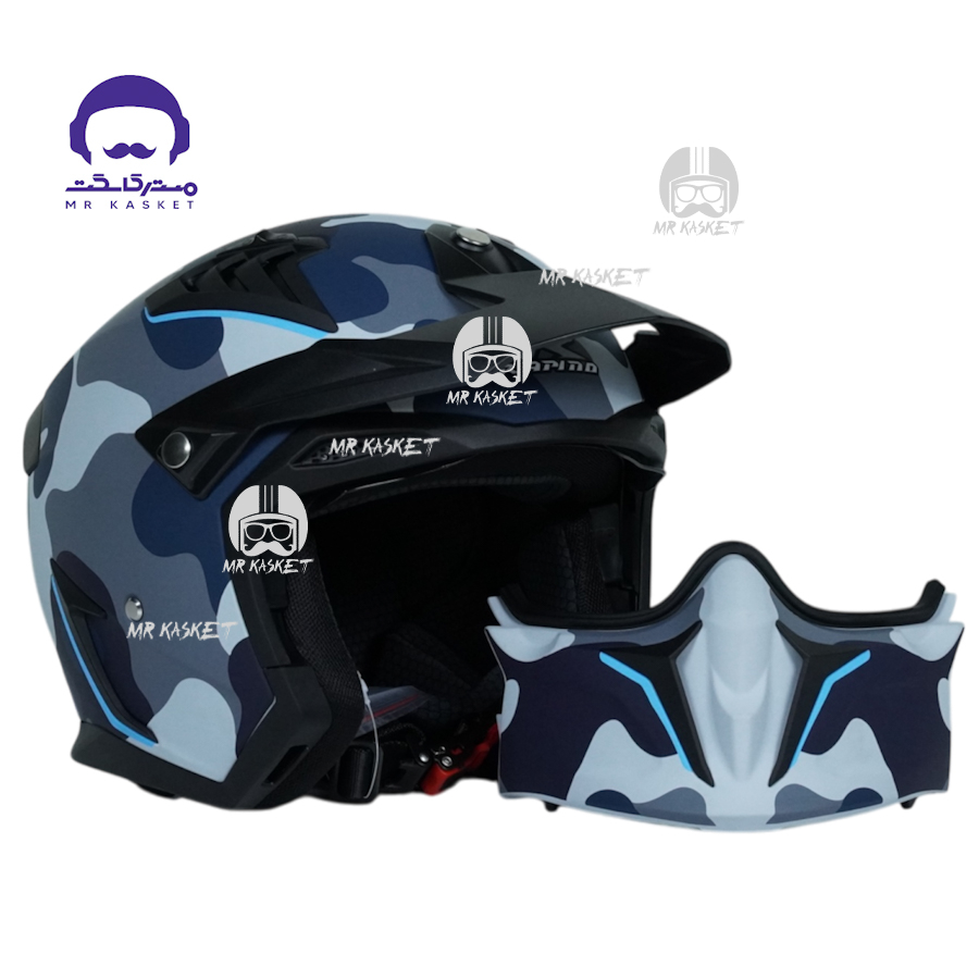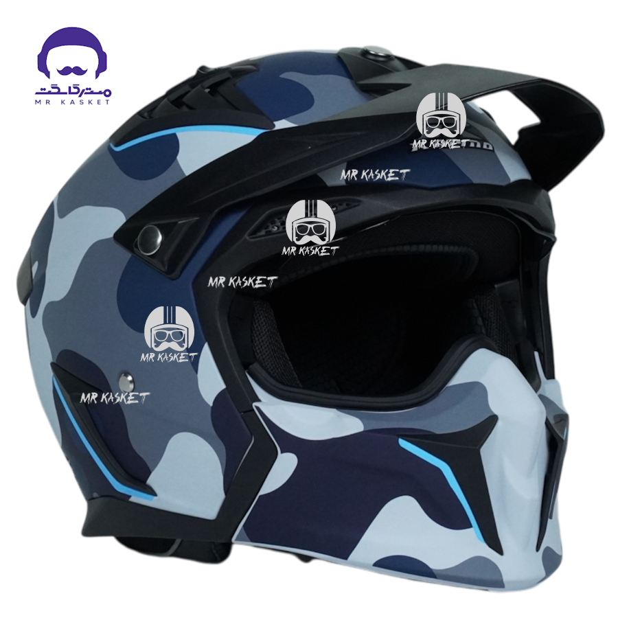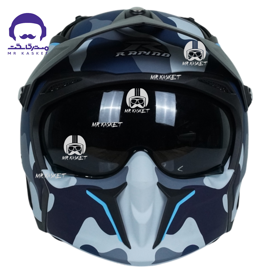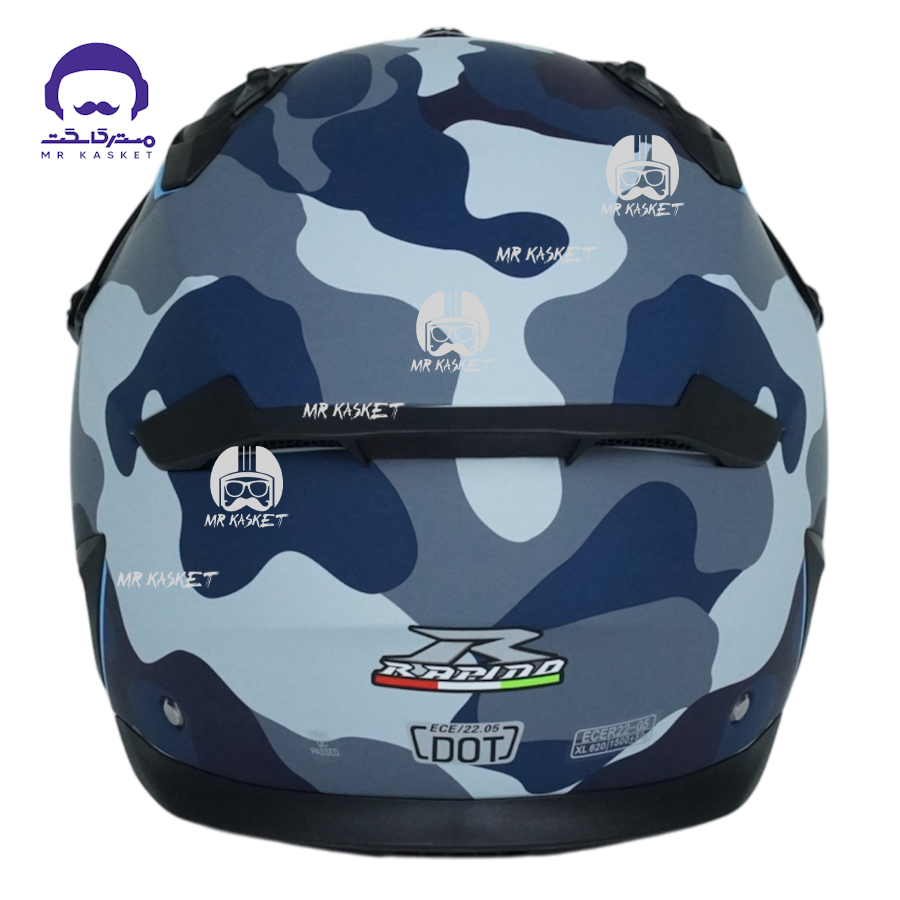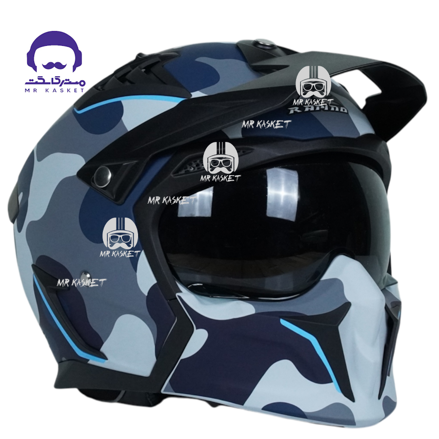 کلاه کاسکت فک جدا برند راپیدو 890 مدل اسکورپین طرح چریکی آبی
