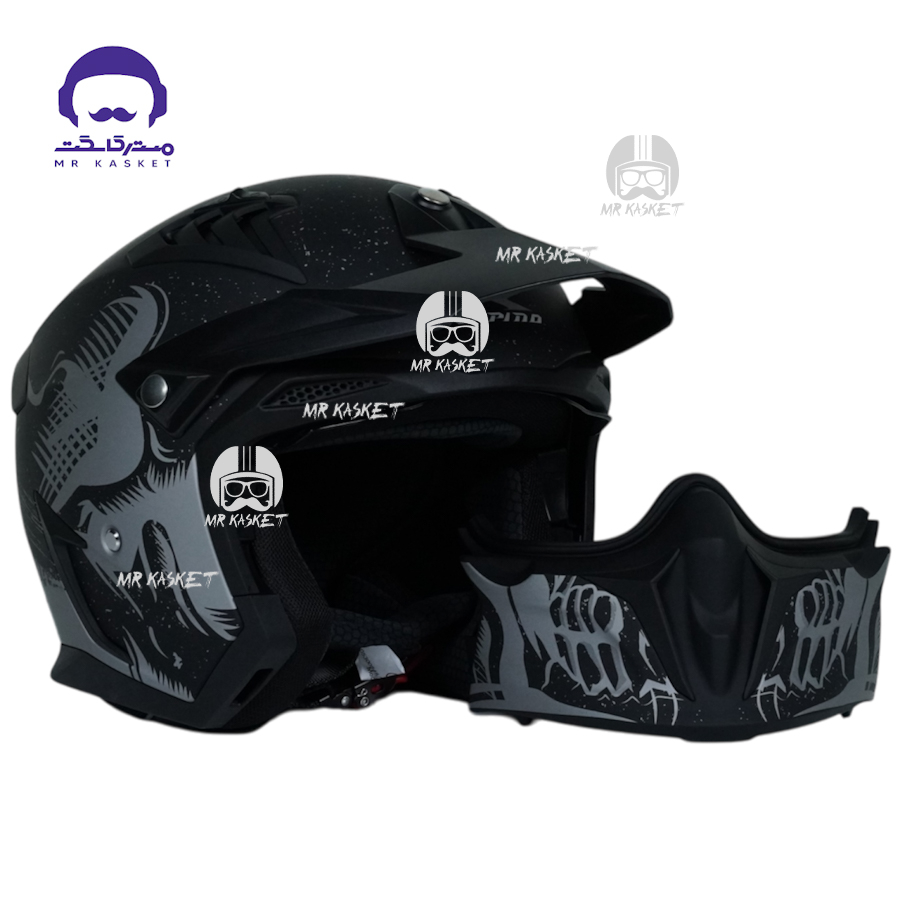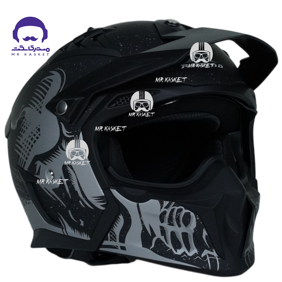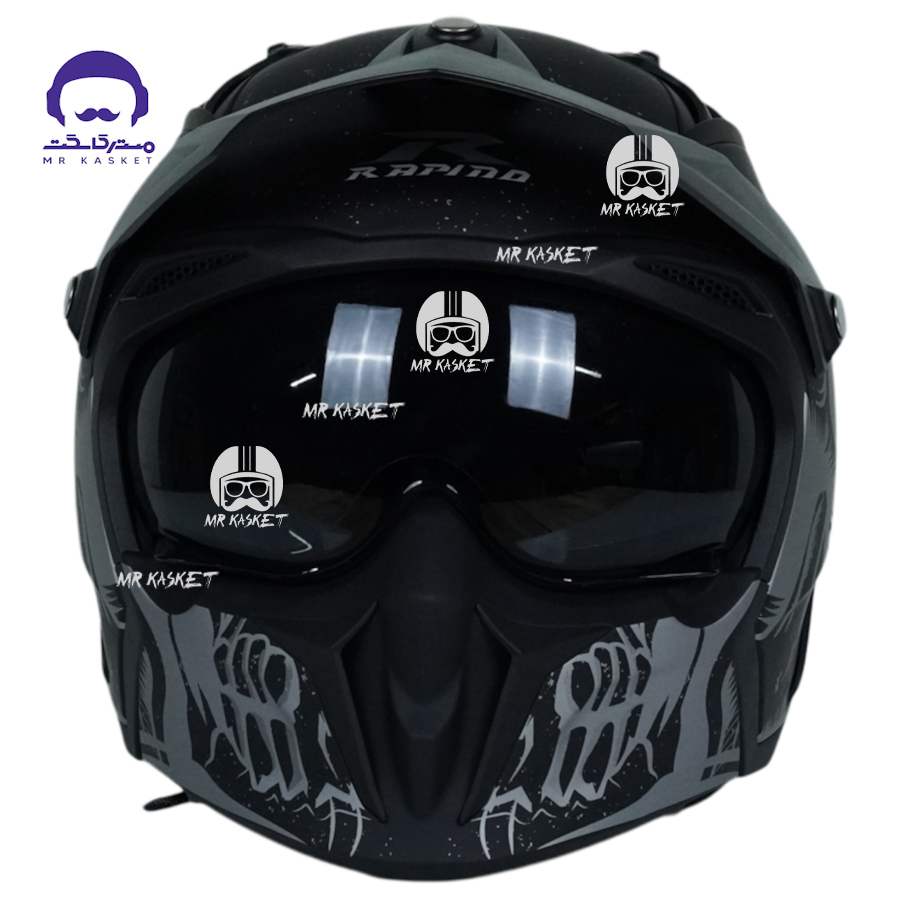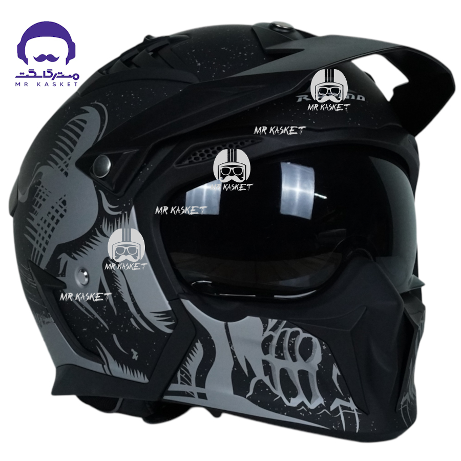 کلاه کاسکت فک جدا برند راپیدو 890 مدل اسکورپین طرح بون مشکی بلوتوث دار