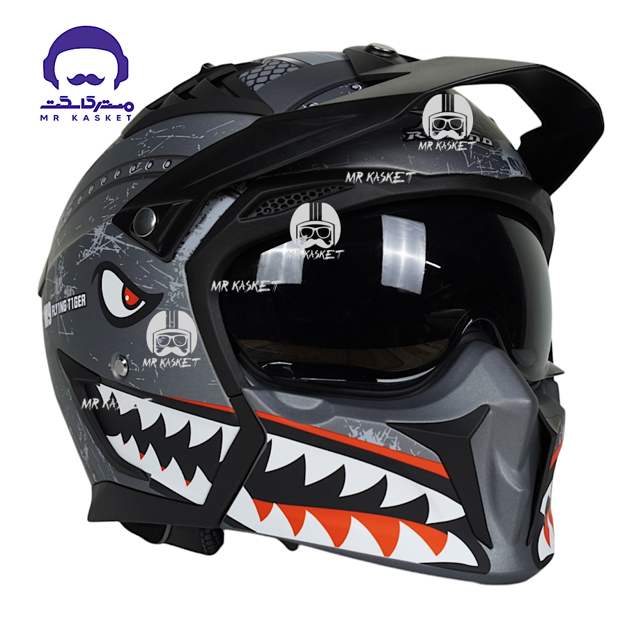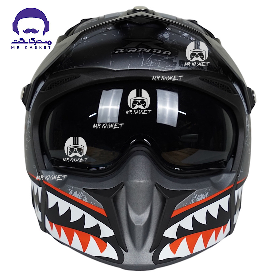 کلاه کاسکت فک جدا برند راپیدو 890 مدل اسکورپین طرح Shark بلوتوث دار