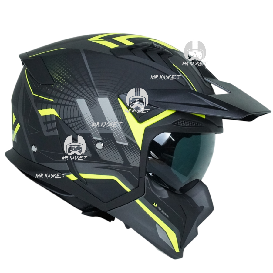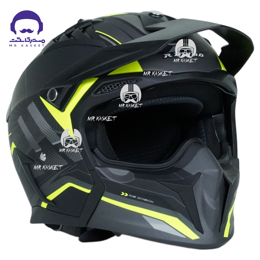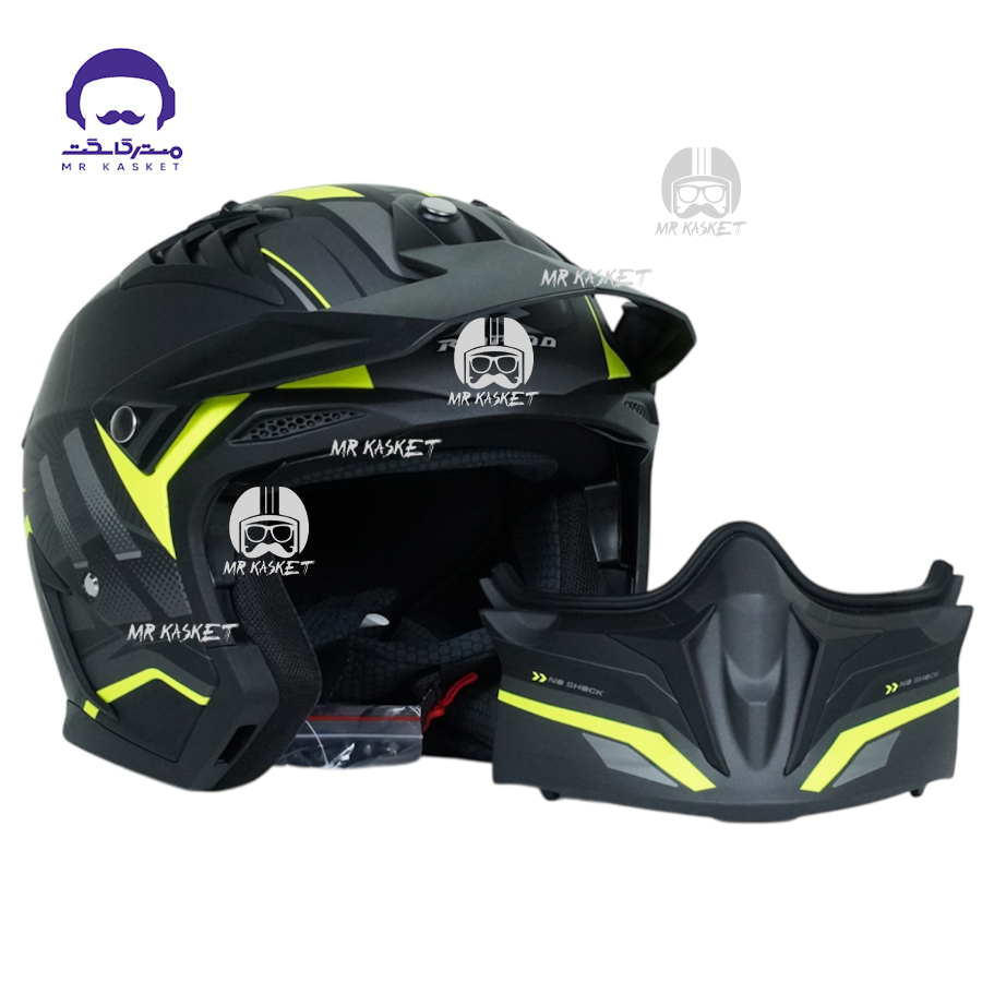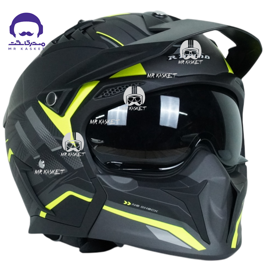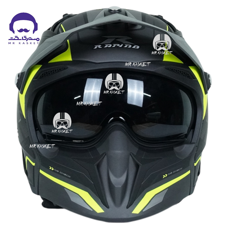 توضیحاتی کوتاه درباره کلاه کاسکت فک جدا برند راپیدو 890 مدل اسکورپین رنگ مشکی زرد مات: