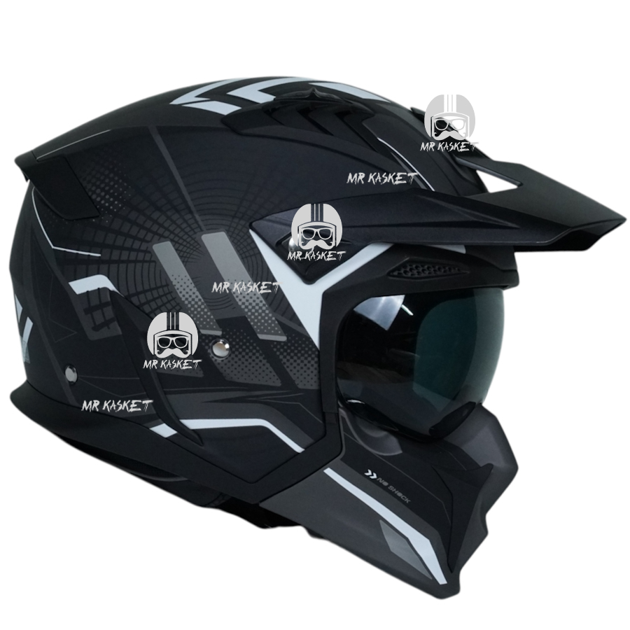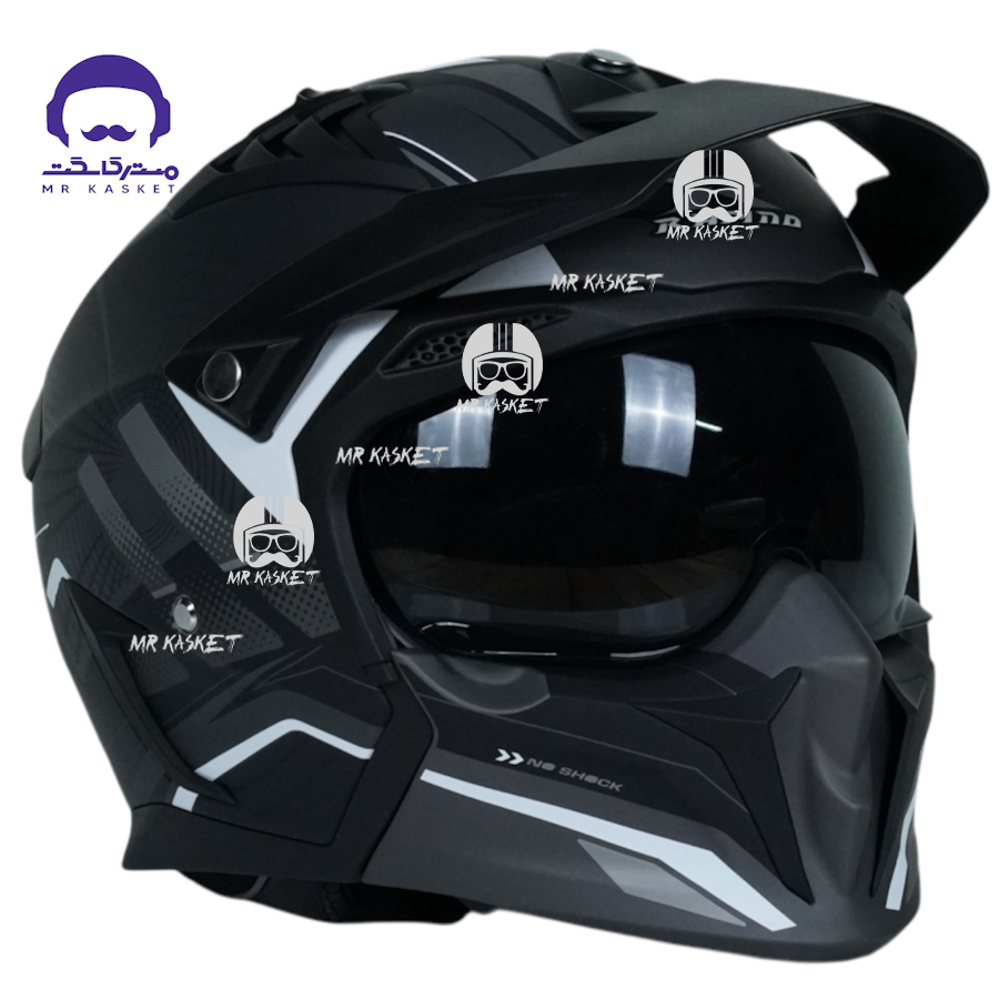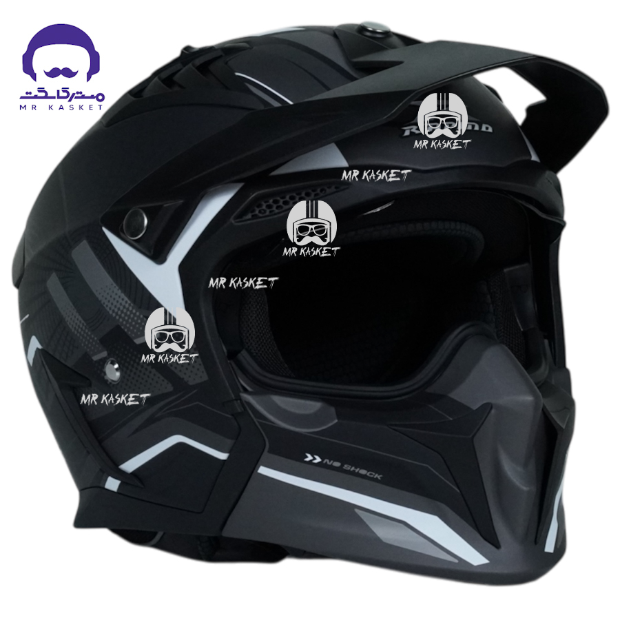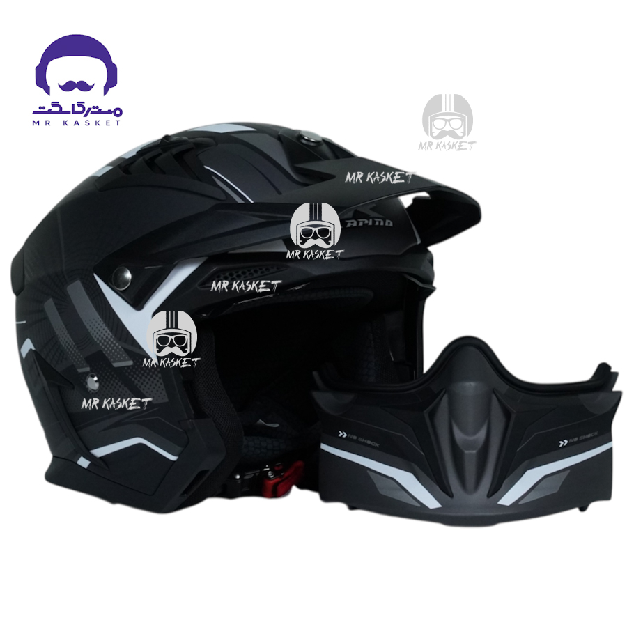 کلاه کاسکت فک جدا برند راپیدو 890 مدل اسکورپین رنگ سفید مشکی