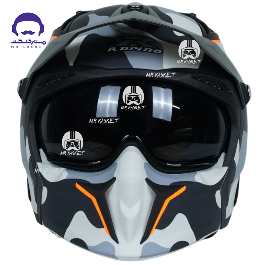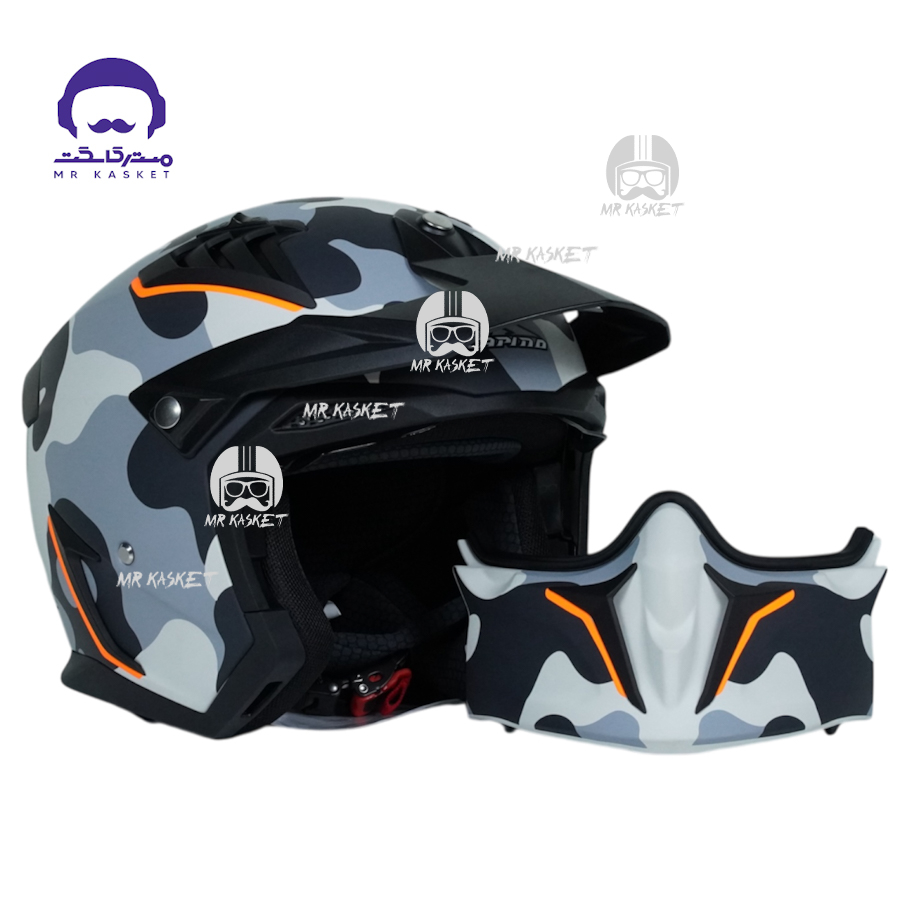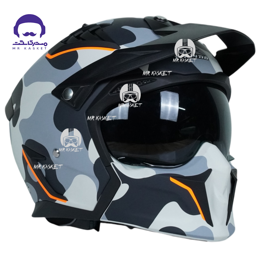 کلاه کاسکت فک جدا برند راپیدو 890 مدل اسکورپین طرح چریکی طوسی