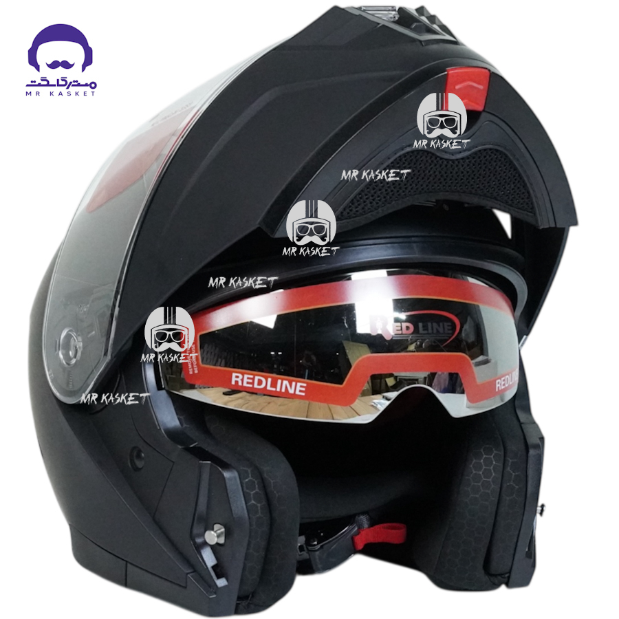کلاه کاسکت فک متحرک بلوتوث دار ردلاین کد 960 مشکی مات